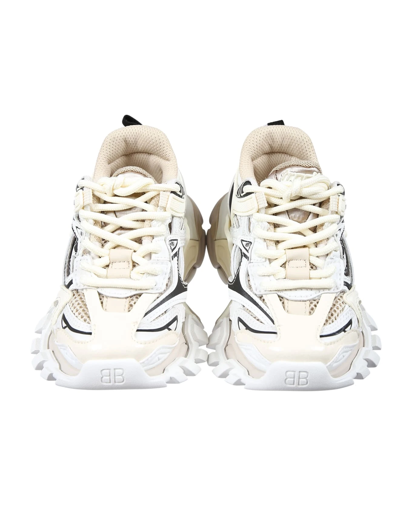 Beige Track. 2 low sneakers, beige lace closure. They are decorated with black and white details, logo on the back and front, black tongue and rubberized sneaker model name. Upper in textile materials and other materials. Upper lining and internal sole in textile materials. Outer sole in other materials.