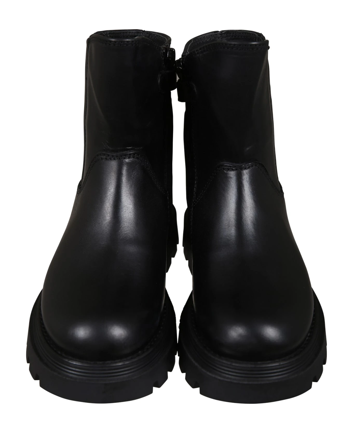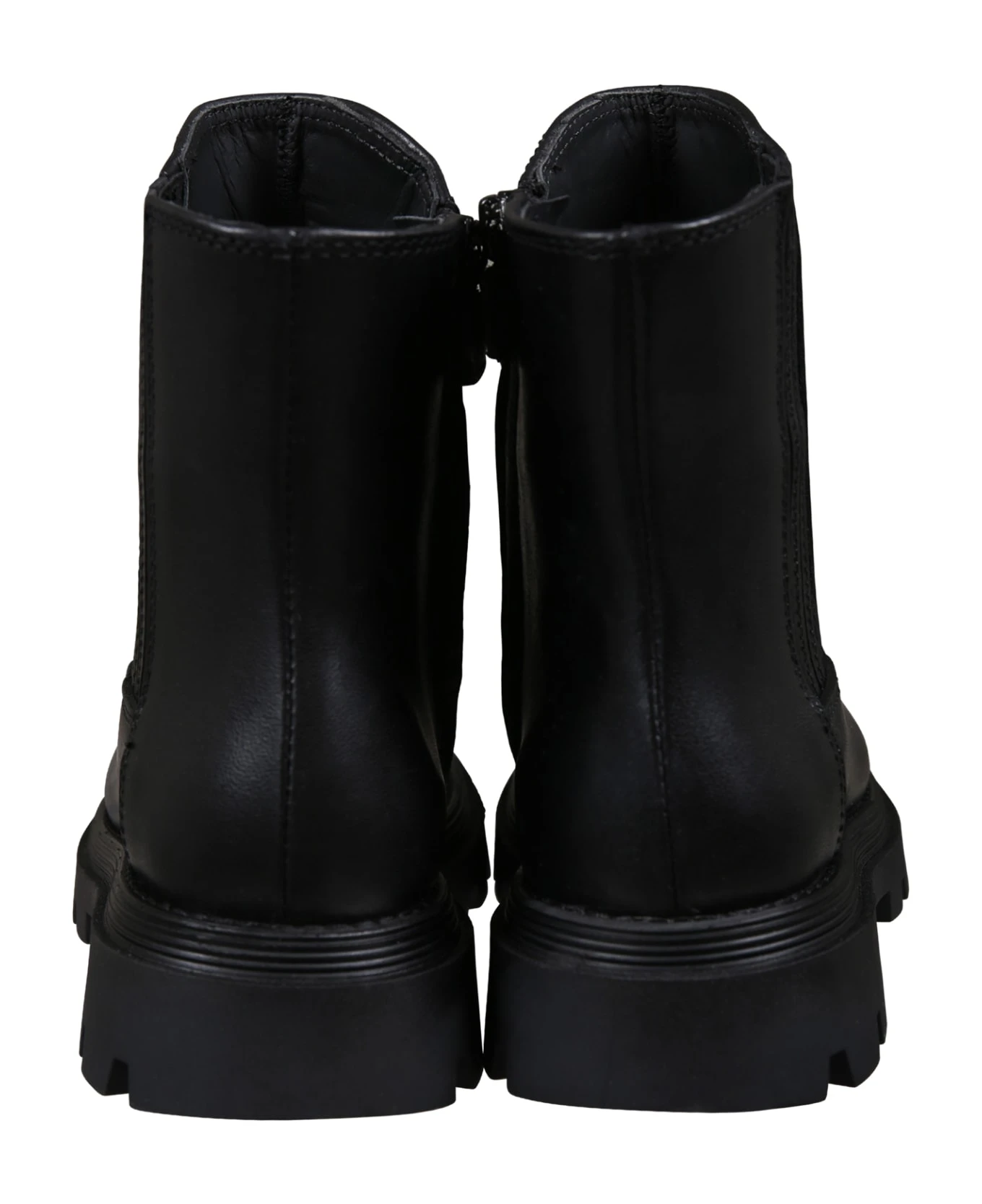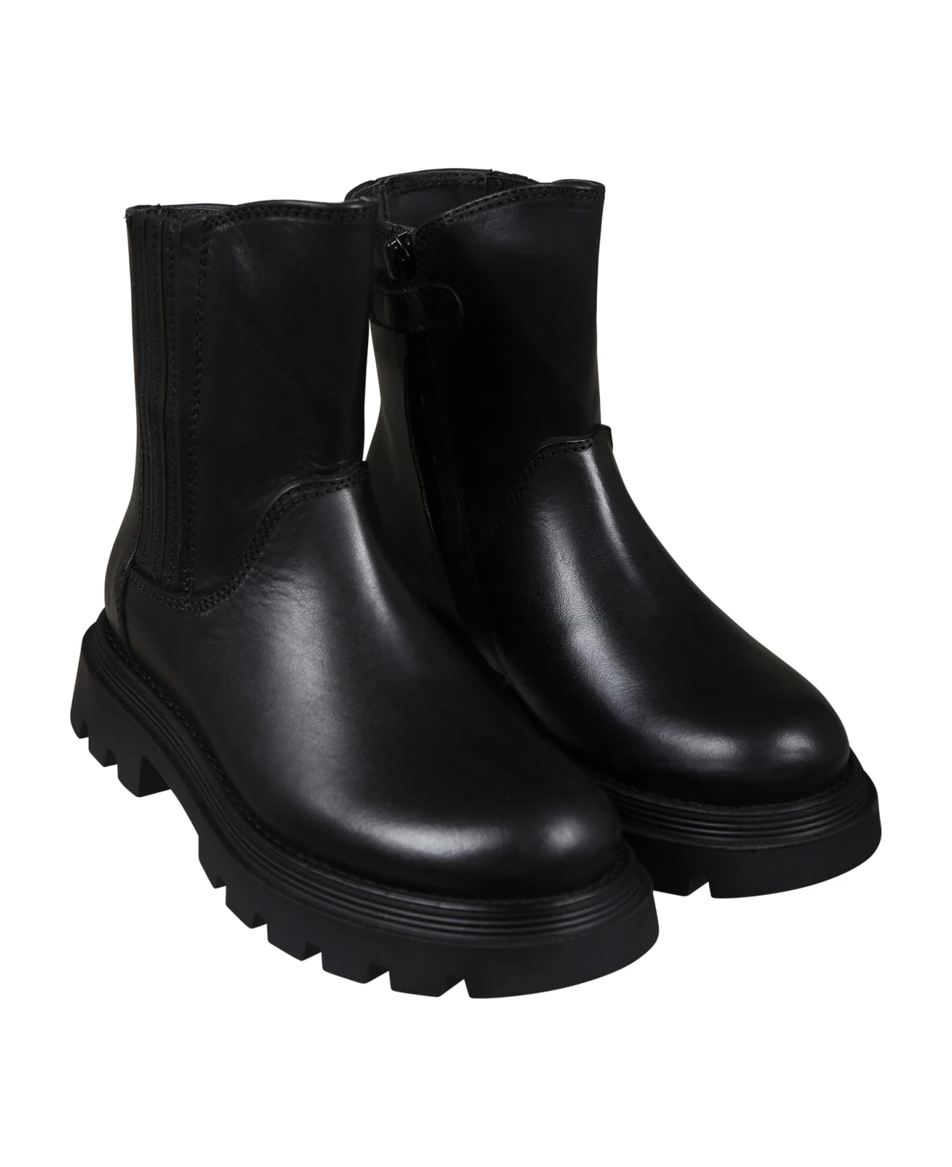 Black leather ankle boots, with rubber sole, round toe, side zip closure, elasticated side. Upper in leather, upper lining and inner sole in leather, outer sole in other materials.