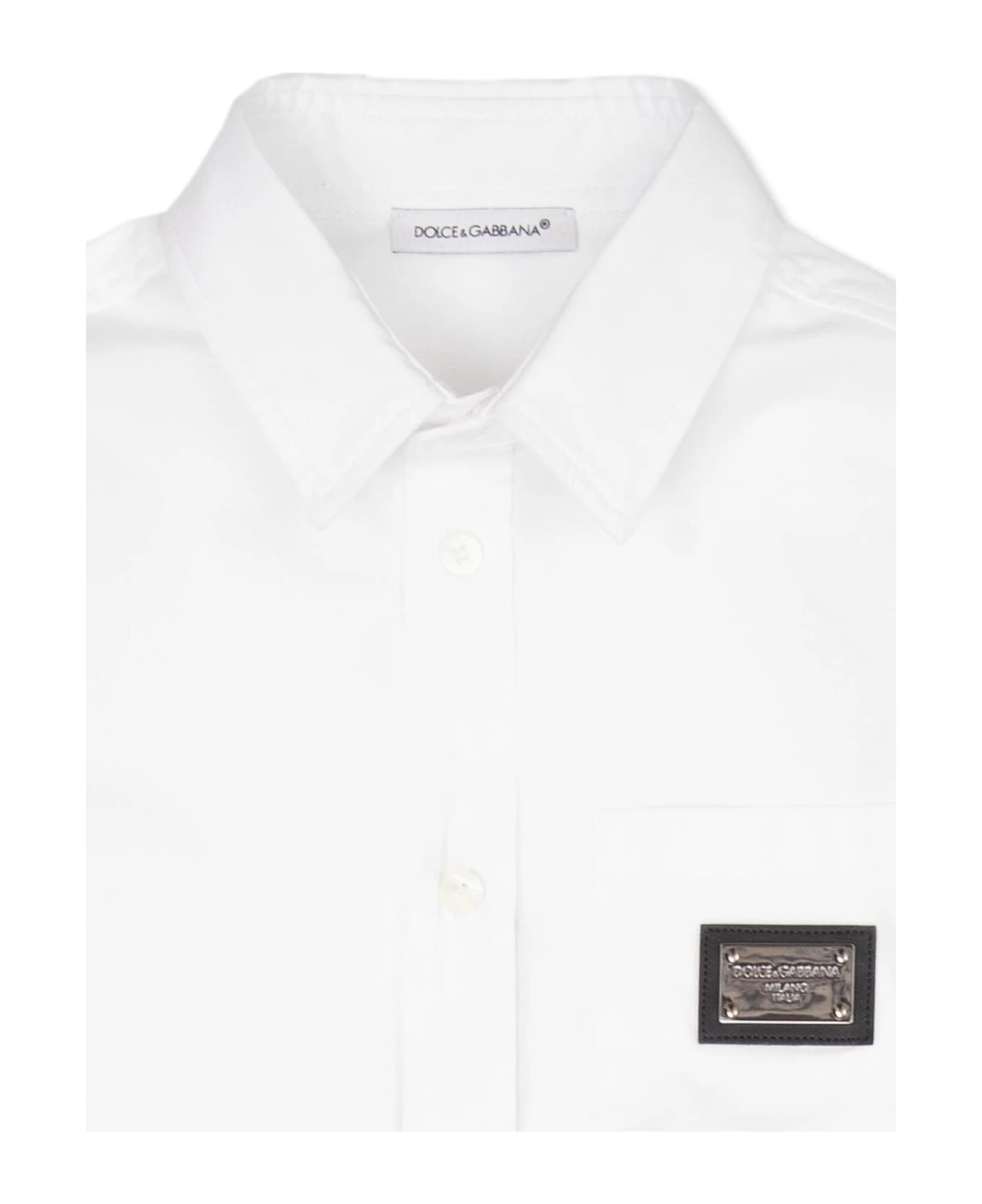 White shirt from Dolce & Gabbana Kids. Made of cotton, this style fastens with buttons and features a slip chest pocket accentuated with a logo-engraved application and long sleeves with button cuffs.