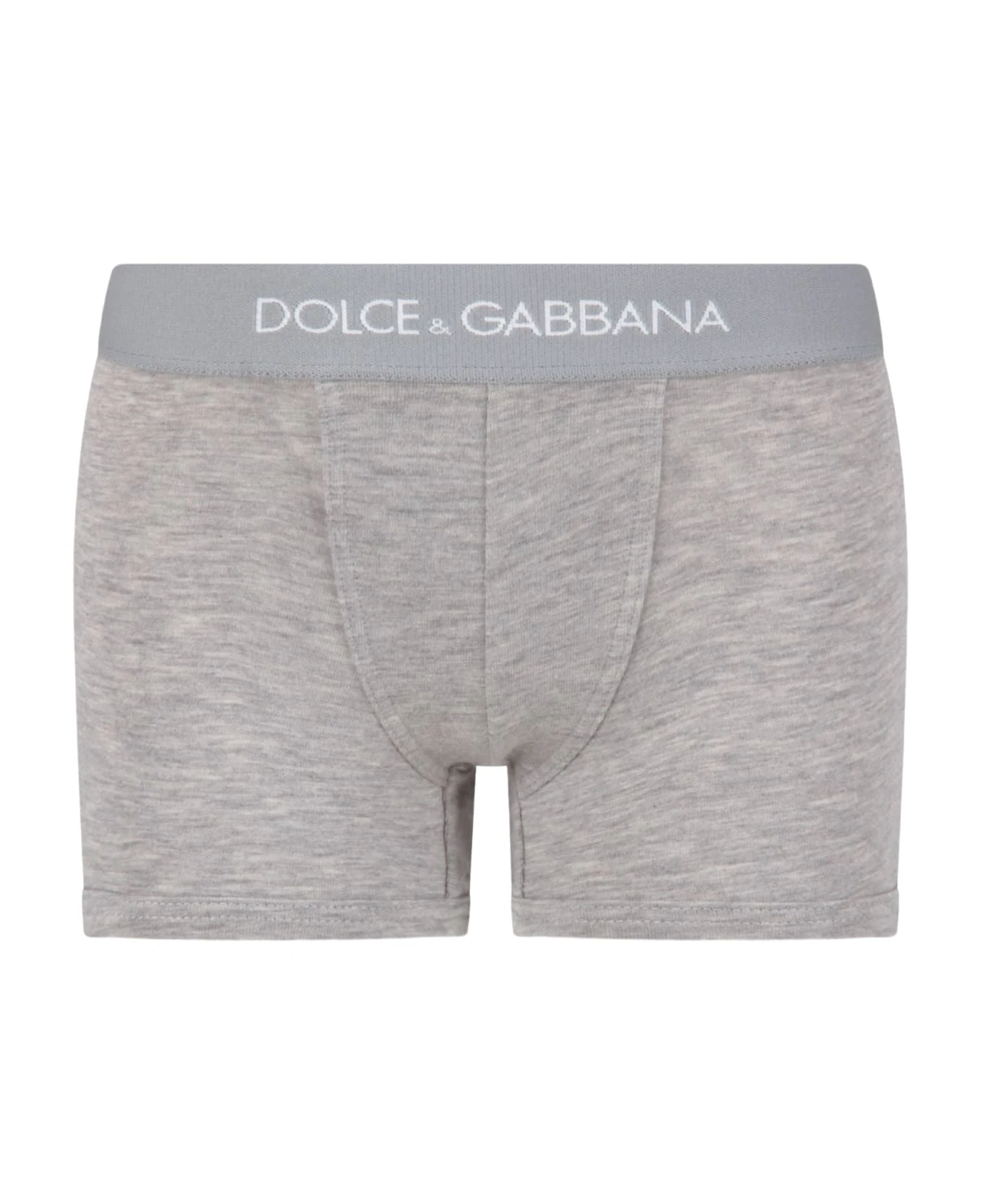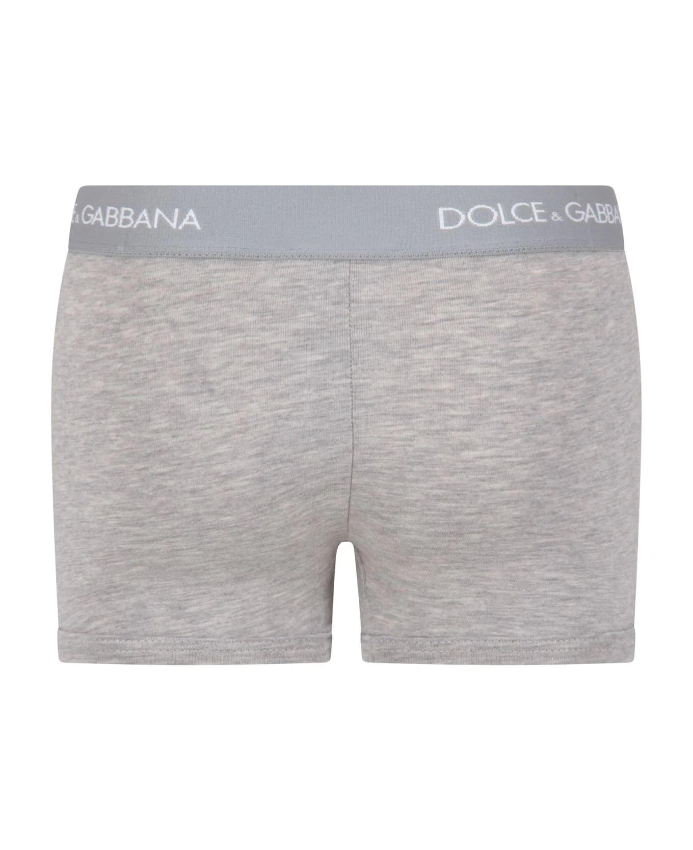 : Set grigio con boxer, decorati con loghi bianchi, sull’elastico in vita.