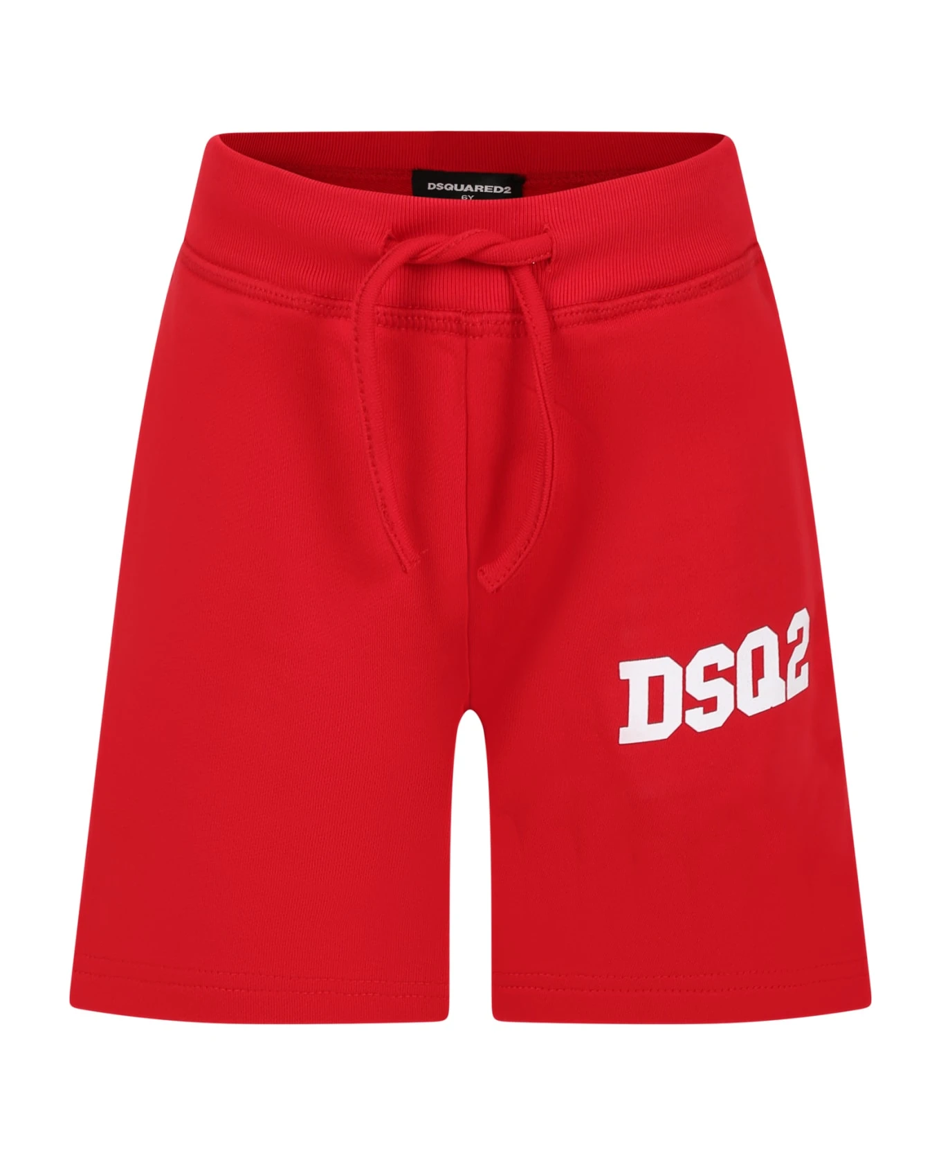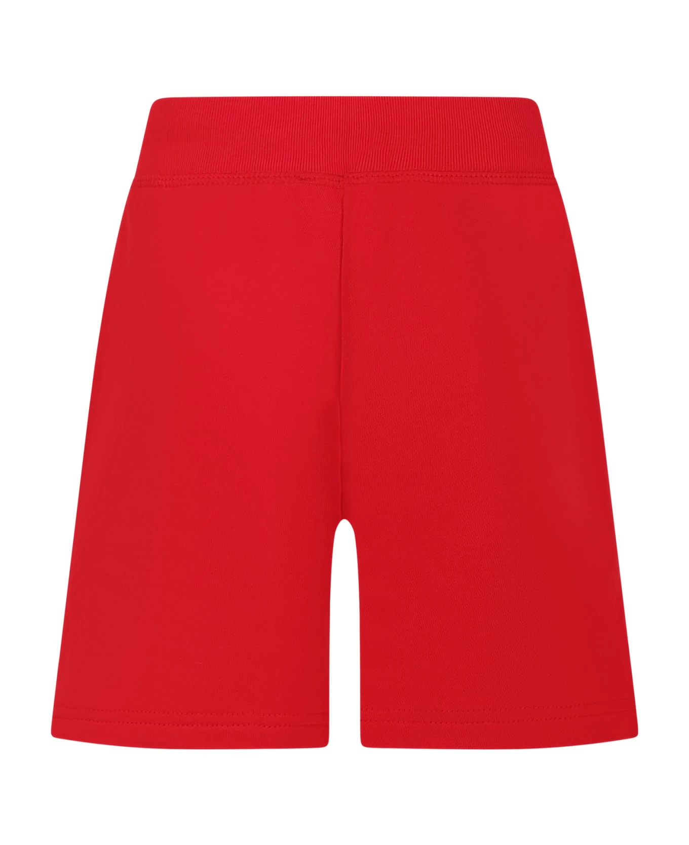 Red casual shorts in brushed cotton, with sides pockets, elastic waistband with drawstring. They are embellished with white logo on the front.