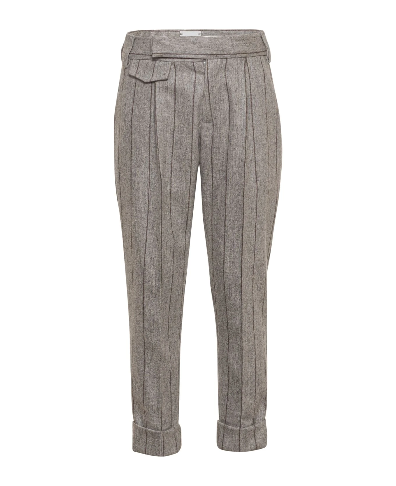Tapered pinstripe trousers by Eleventy Kids. Composition