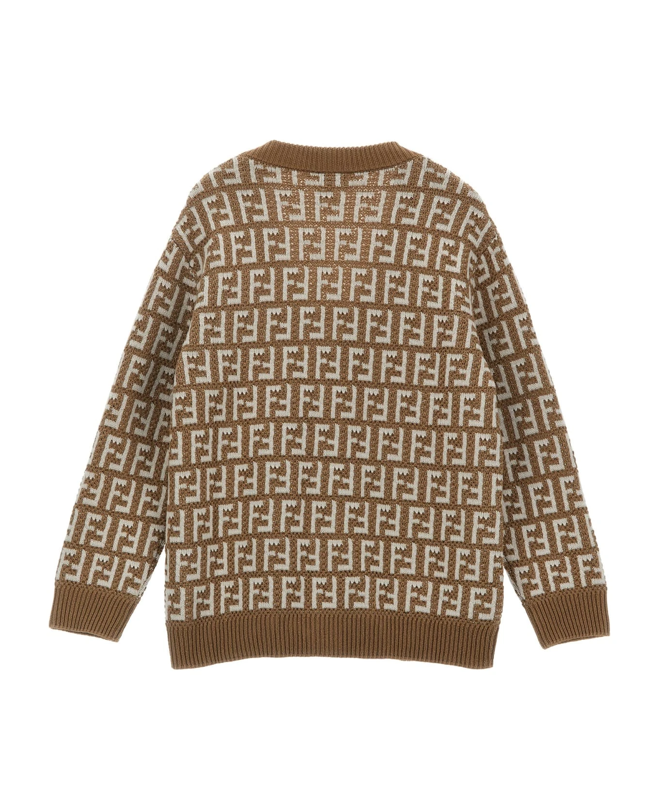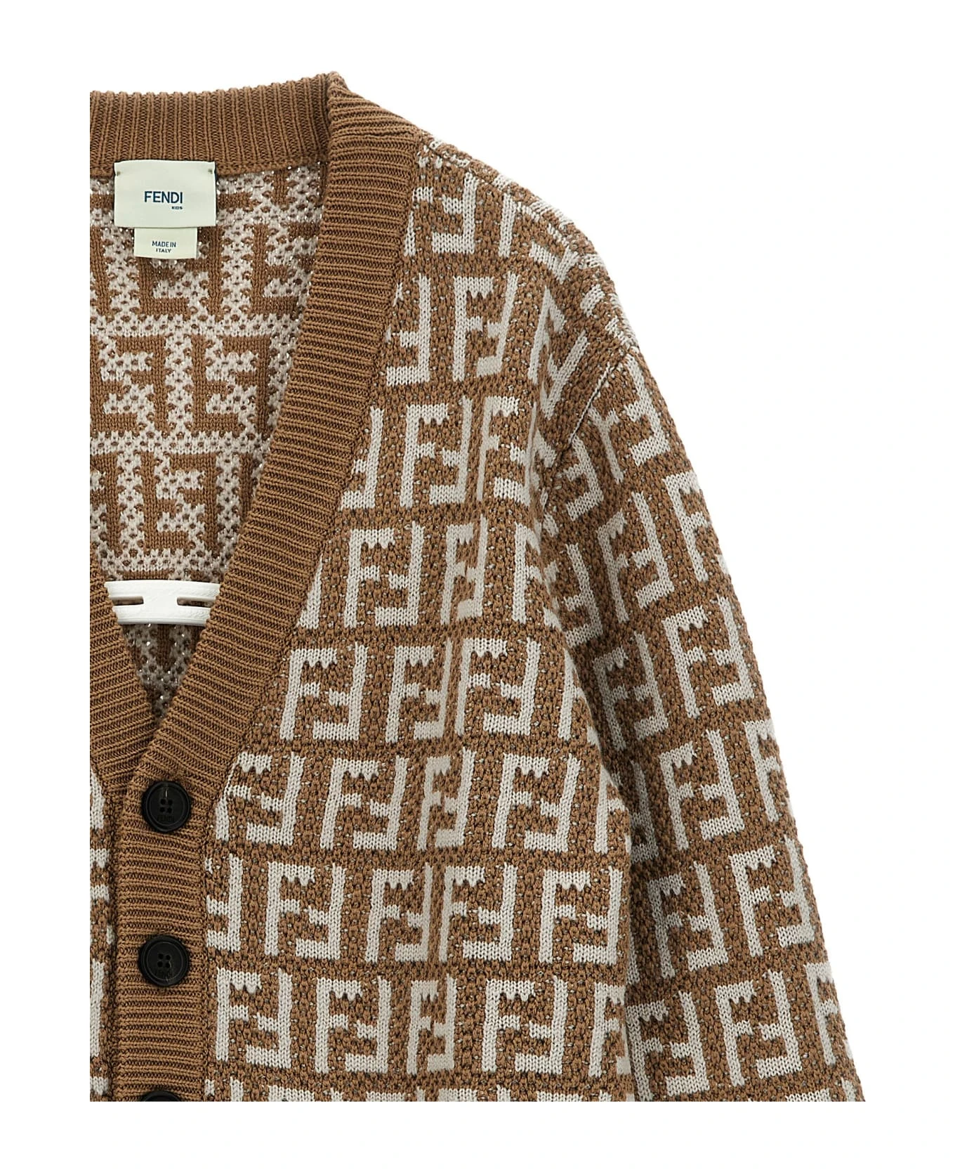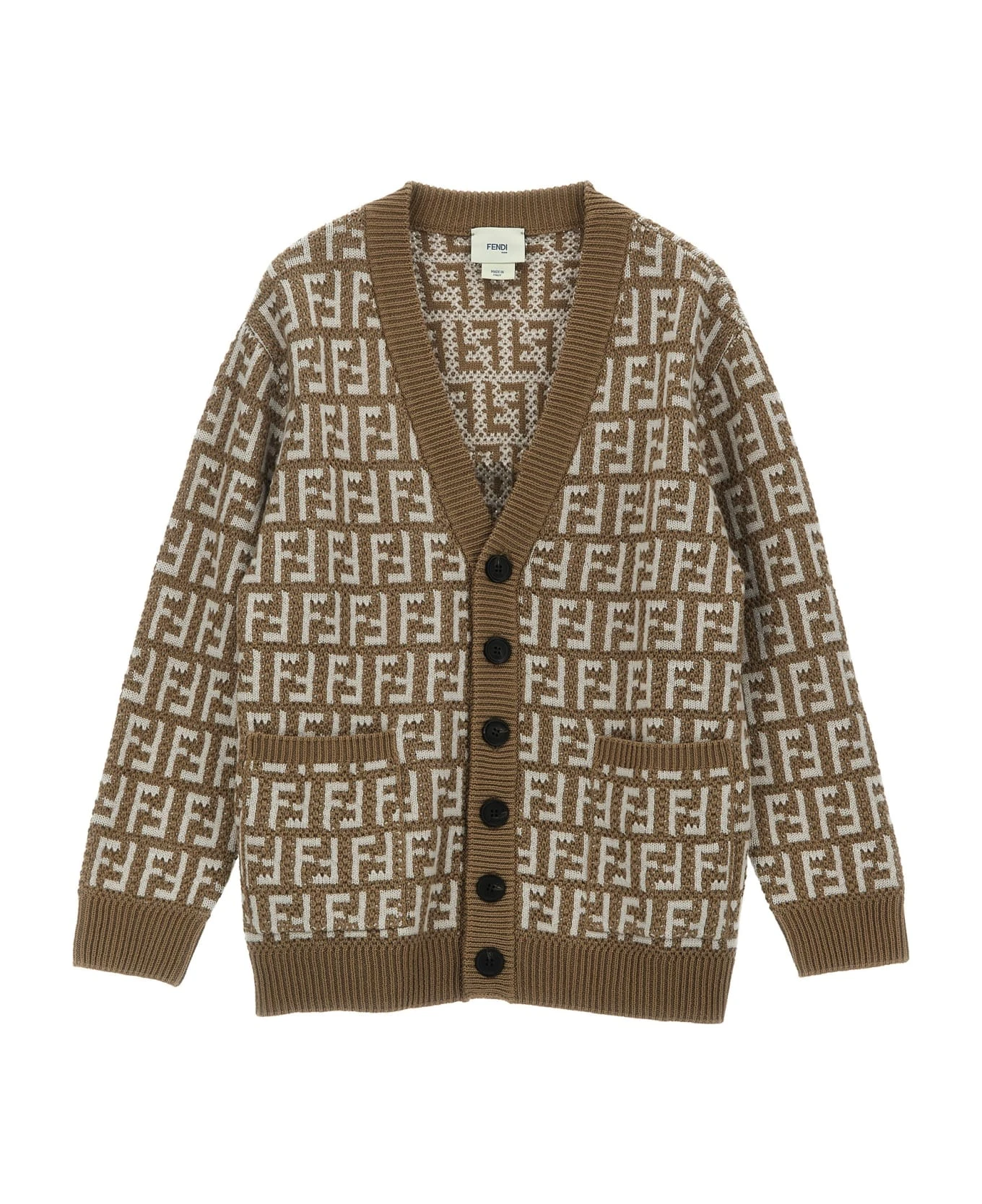 ‘FF’ cotton cardigan with all-over logo, button closure, V-neck.