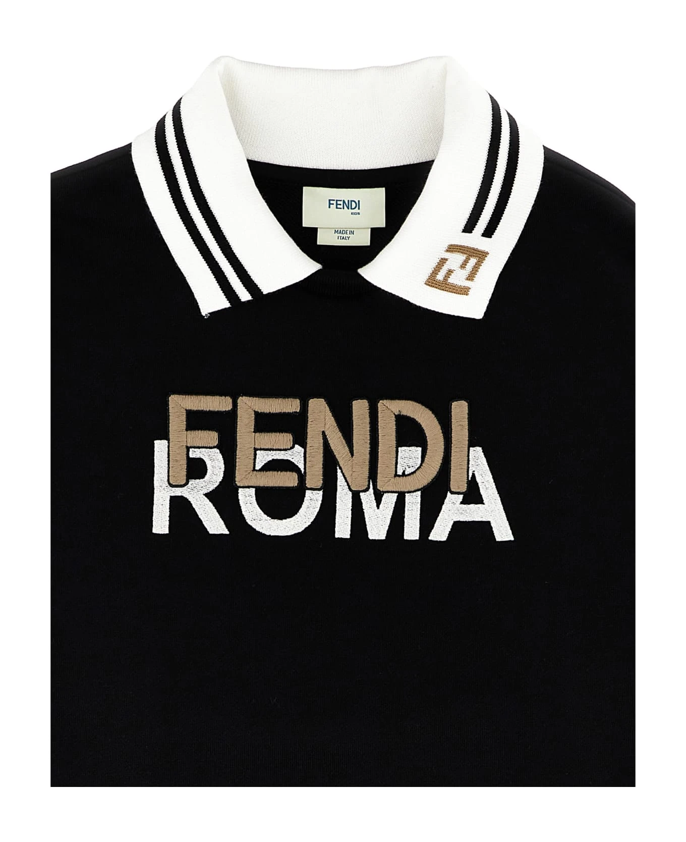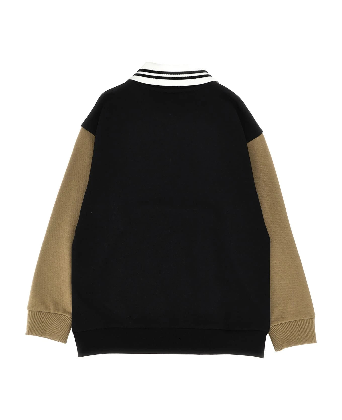 Cotton sweatshirt with contrast knit collar, front logo embroidery, long cuffed sleeves.