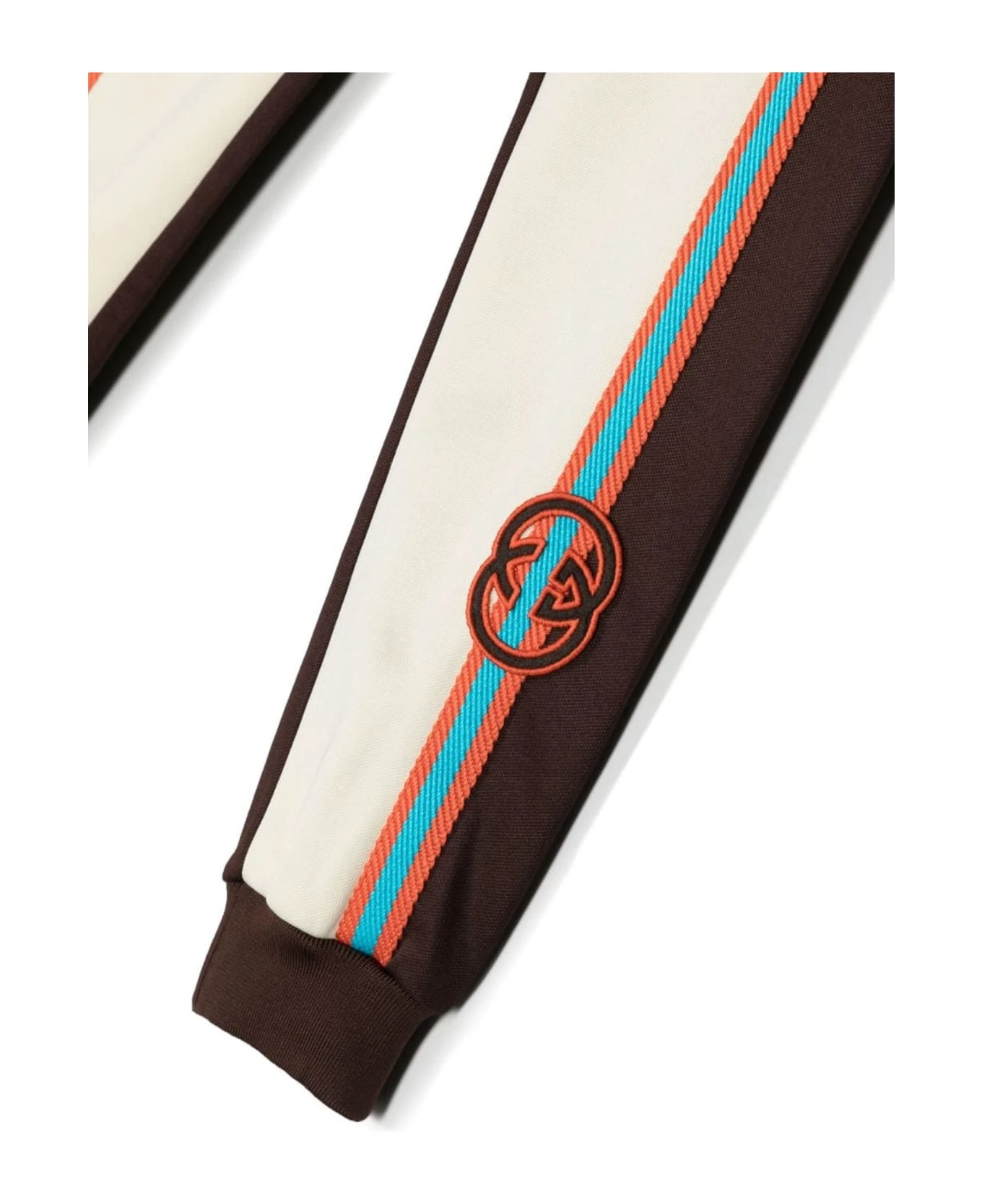 Brown cotton track pants, appliqu ogo, signature Interlocking G logo, stripe detailing, elasticated waistband, tapered leg, elasticated ankles