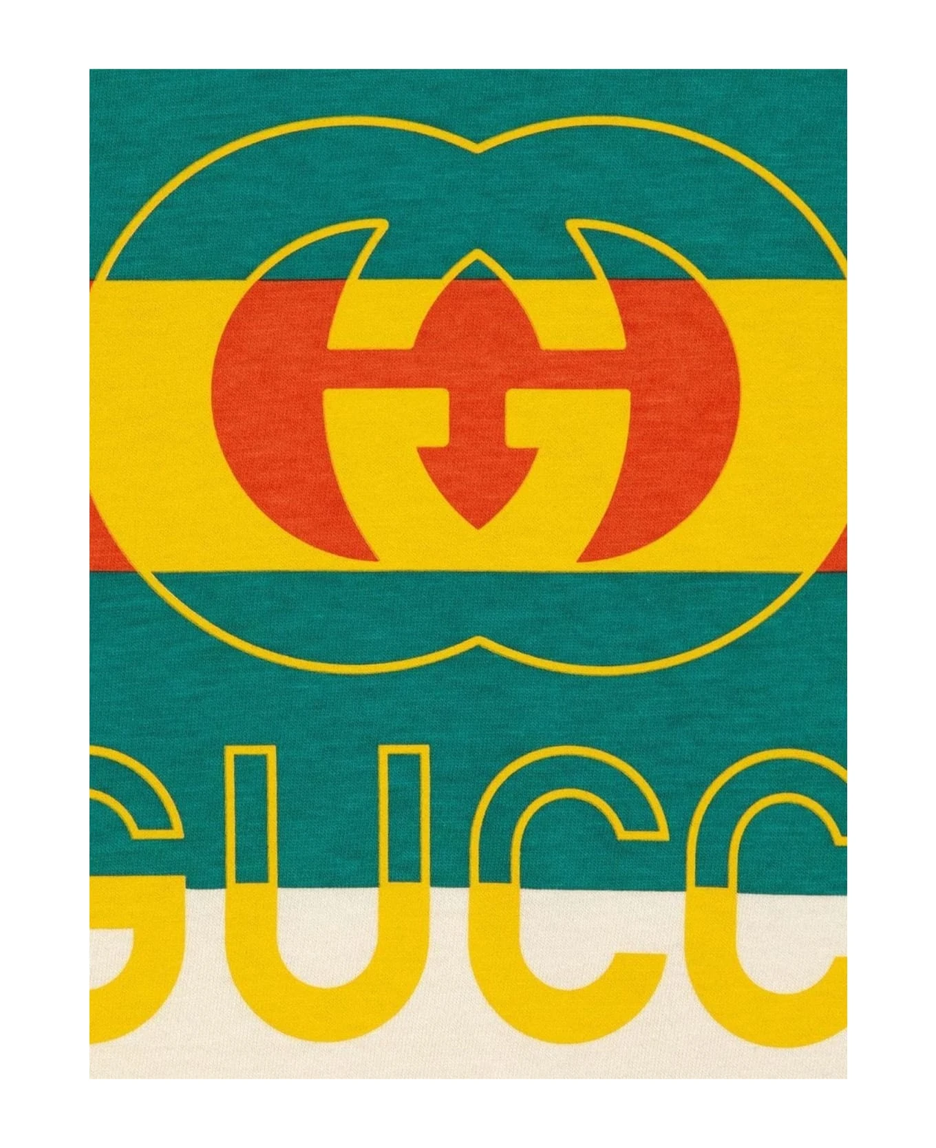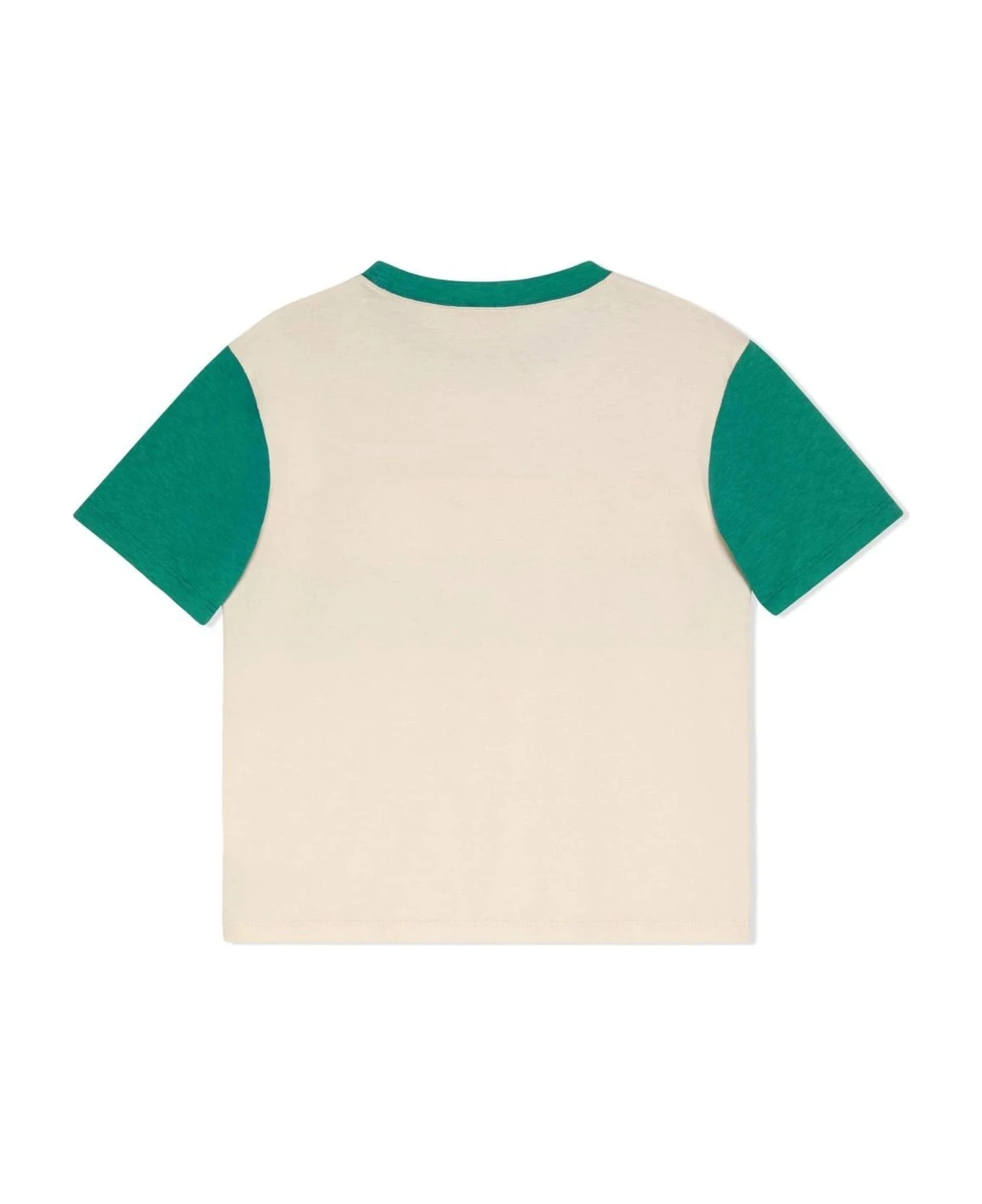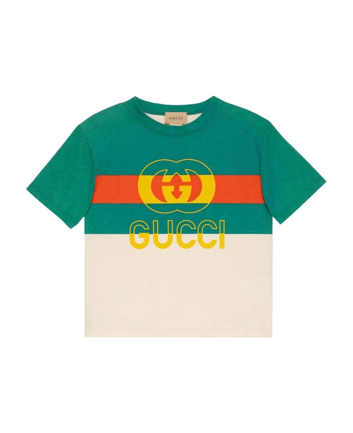 Green cotton T-shirt featuring signature Web-stripe trim, signature Interlocking G logo, round neck, short sleeves, straight hem