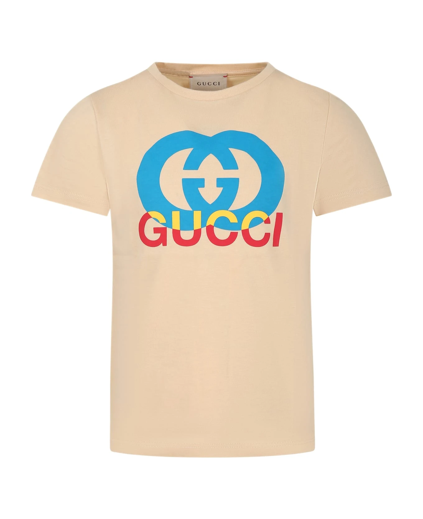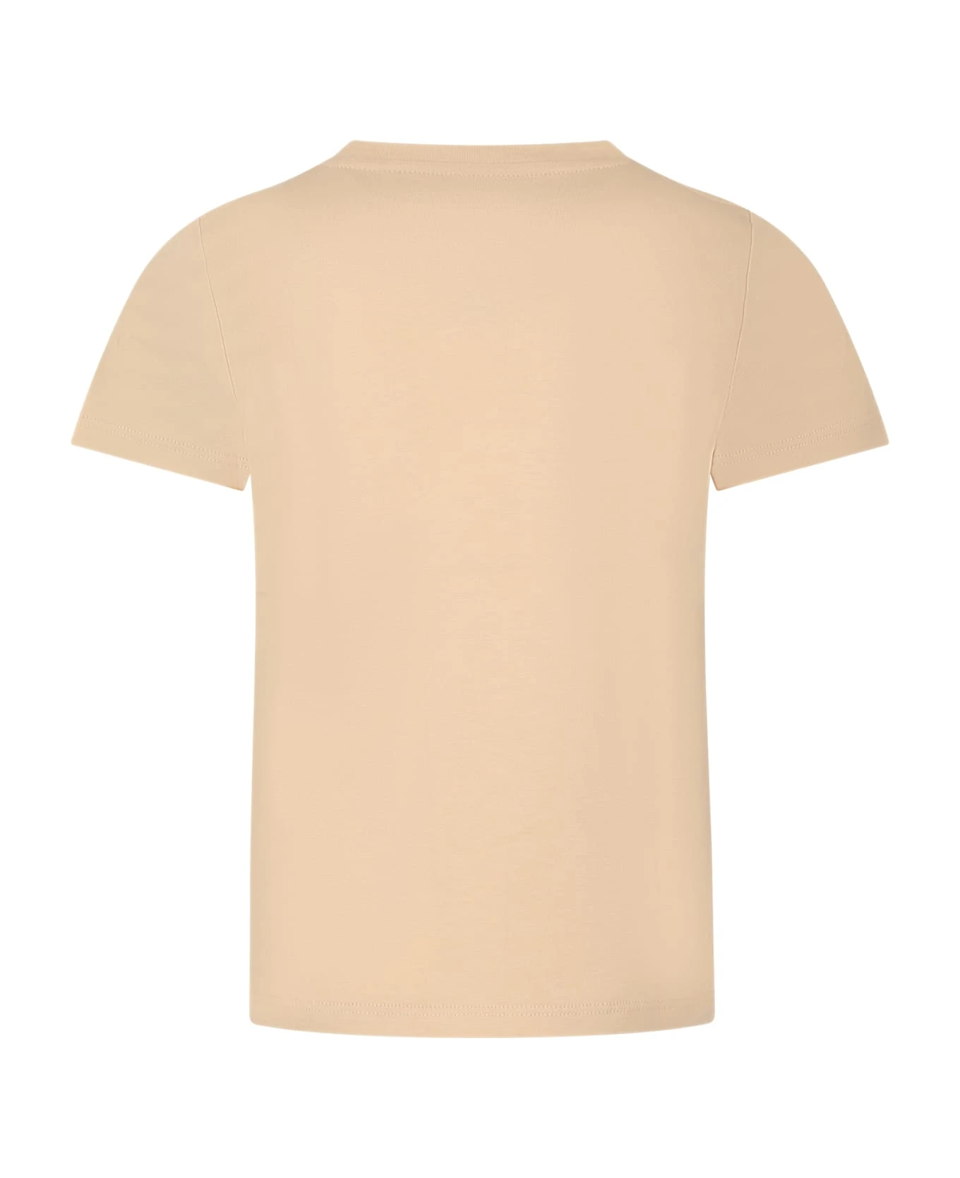 Ivory t-shirt in 100% cotton, short sleeves, ribbed crew. It is decorated with iconic logo print on the front.