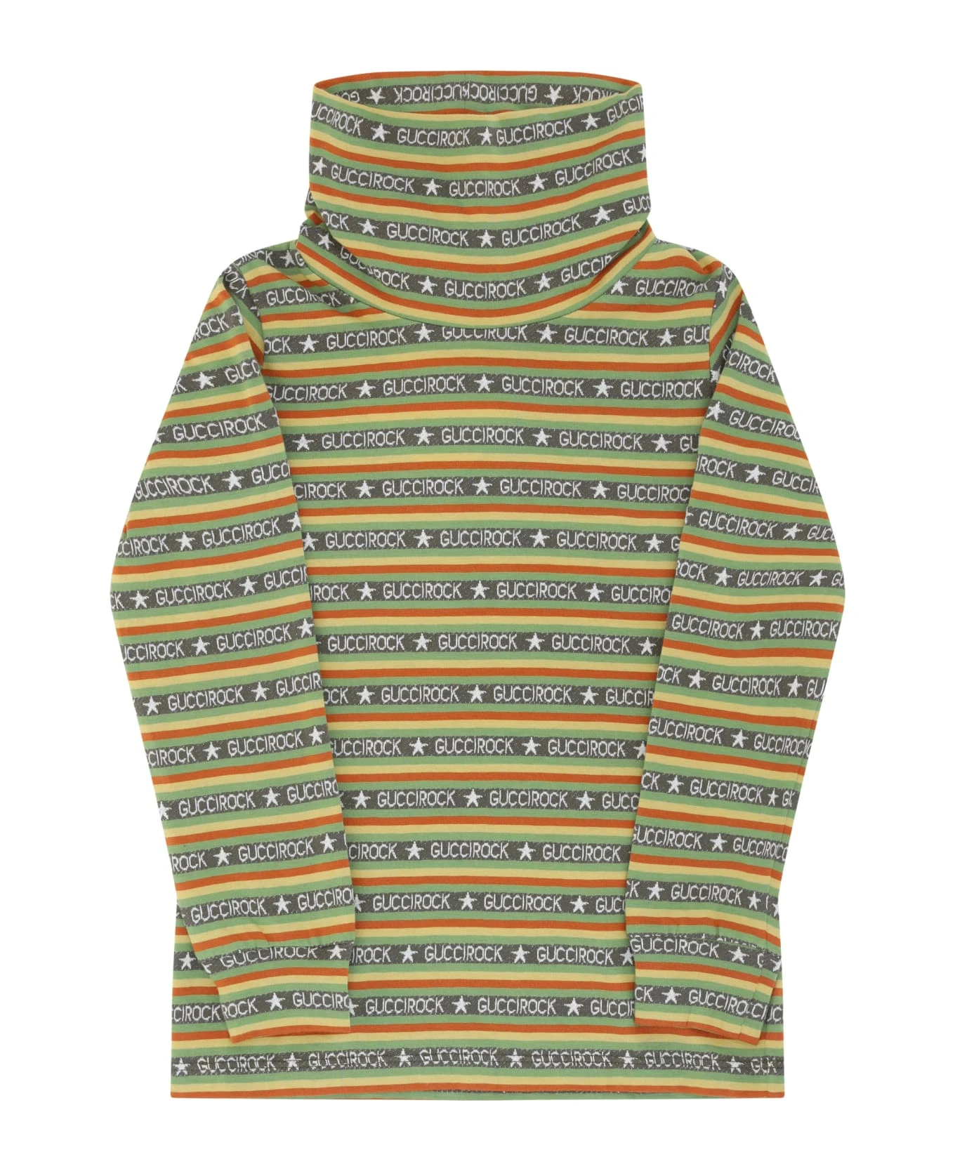 Cotton long jersey for boy by gucci, turtleneck model, iconic brand logo printed and repeated all-over, regular fit.