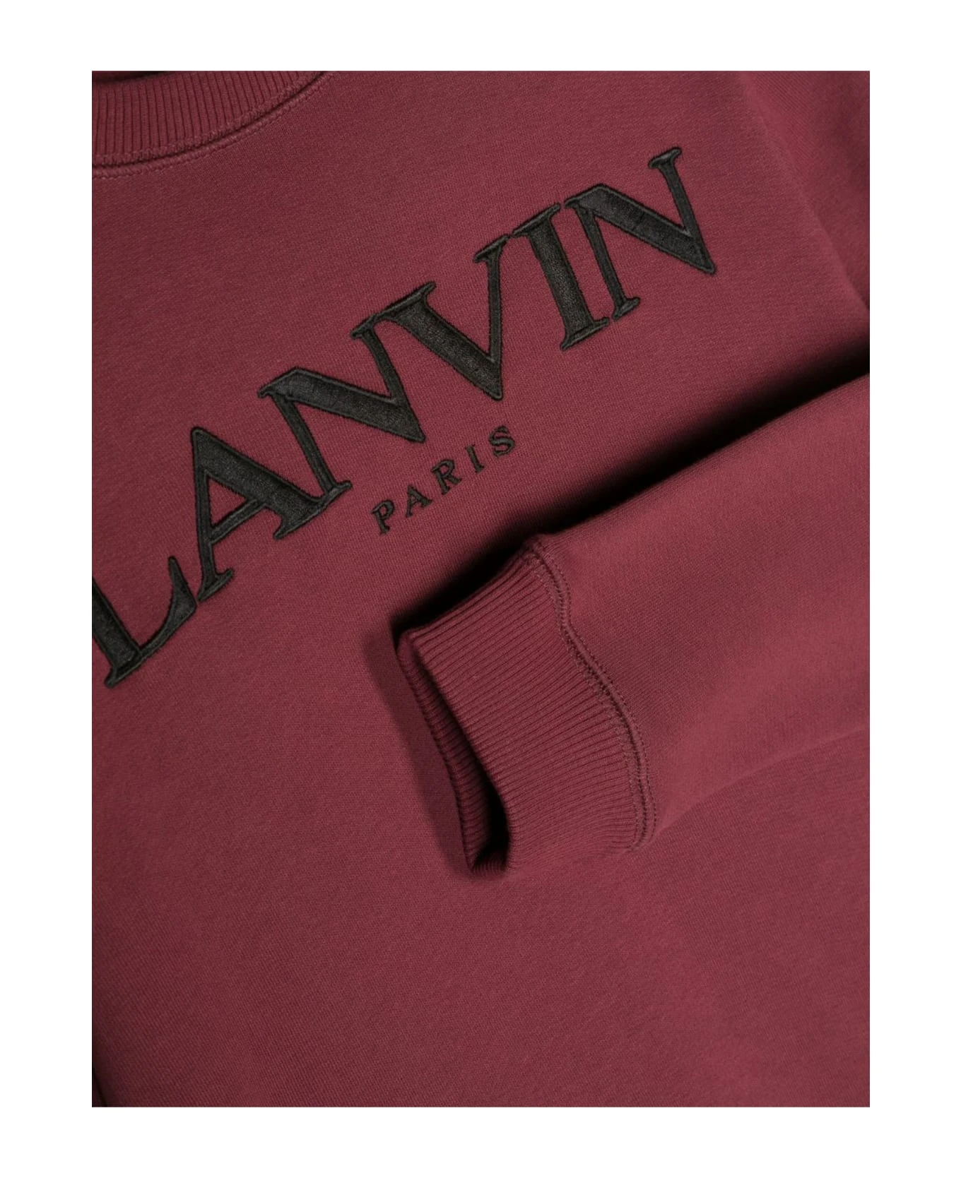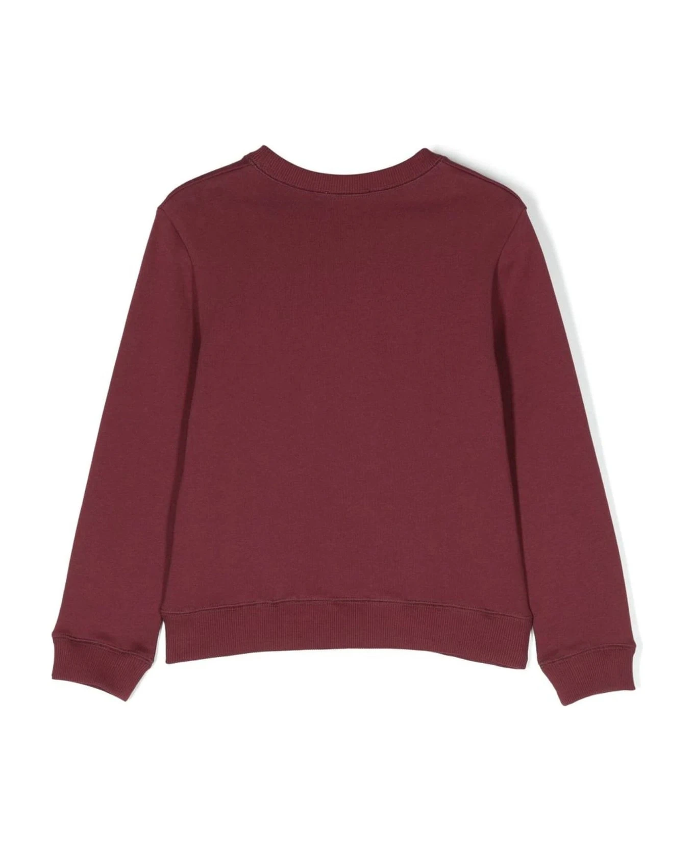 Bordeaux red cotton sweatshirt, jersey knit, embroidered logo to the front, crew neck, long sleeves, ribbed cuffs and hem