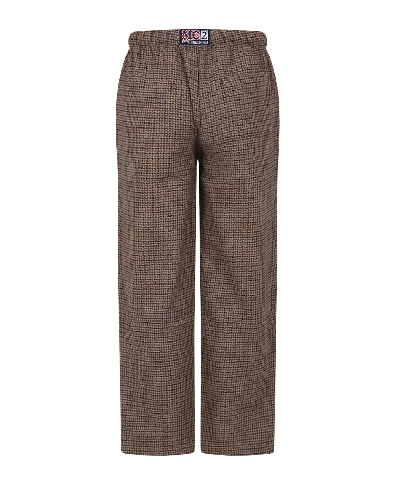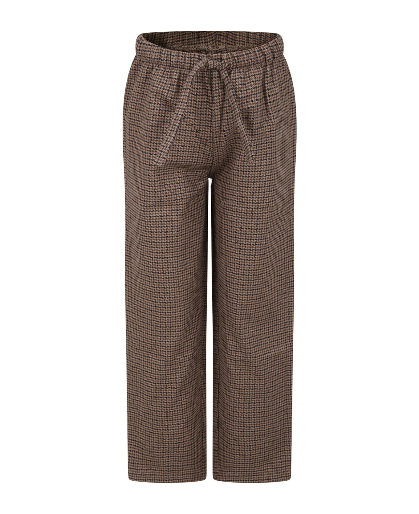 Beige houndstooth pajama trousers, in flannel, with elasticated waist, drawstring and back pocket. They areembellished with a logo patch on the back.