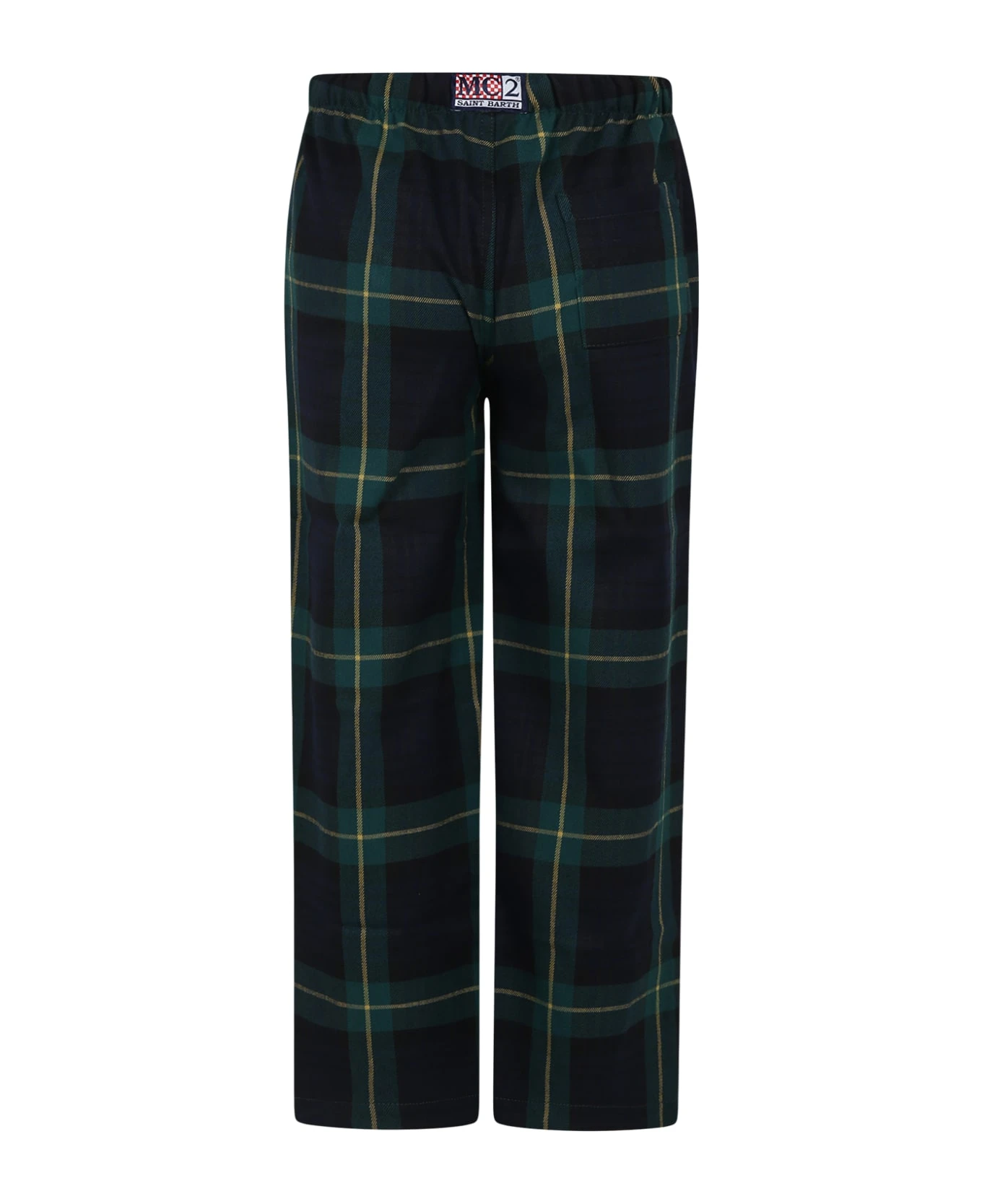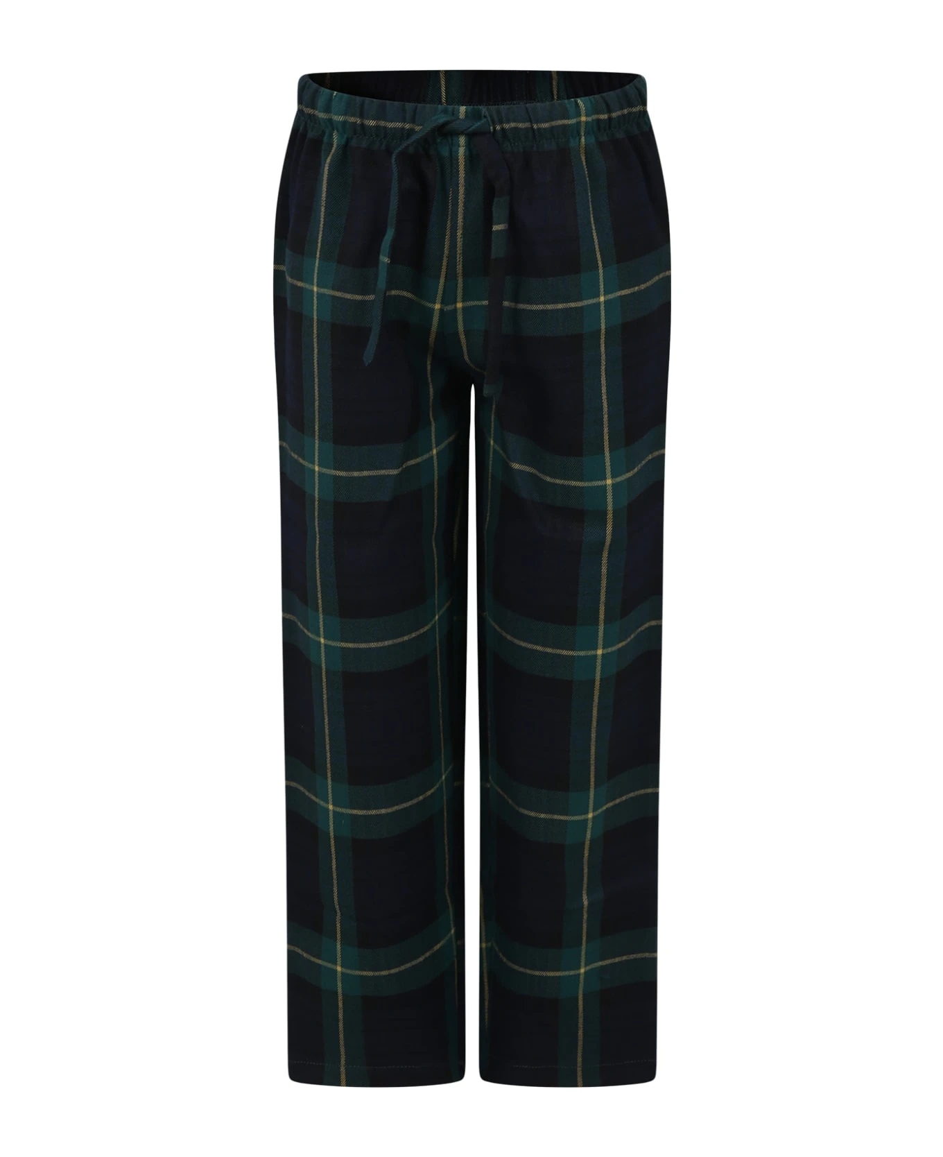 Green tartan pajama trousers, in flannel, with elasticated waist, drawstring and back pocket. They are embellished with a logo patch on the back.