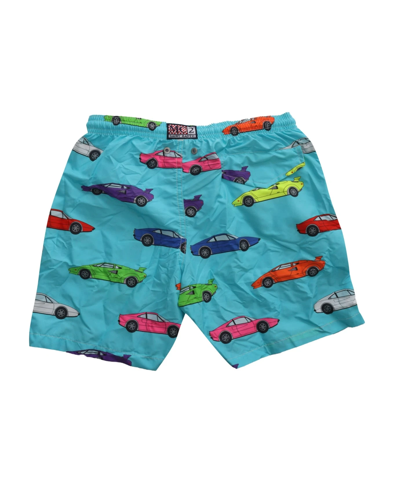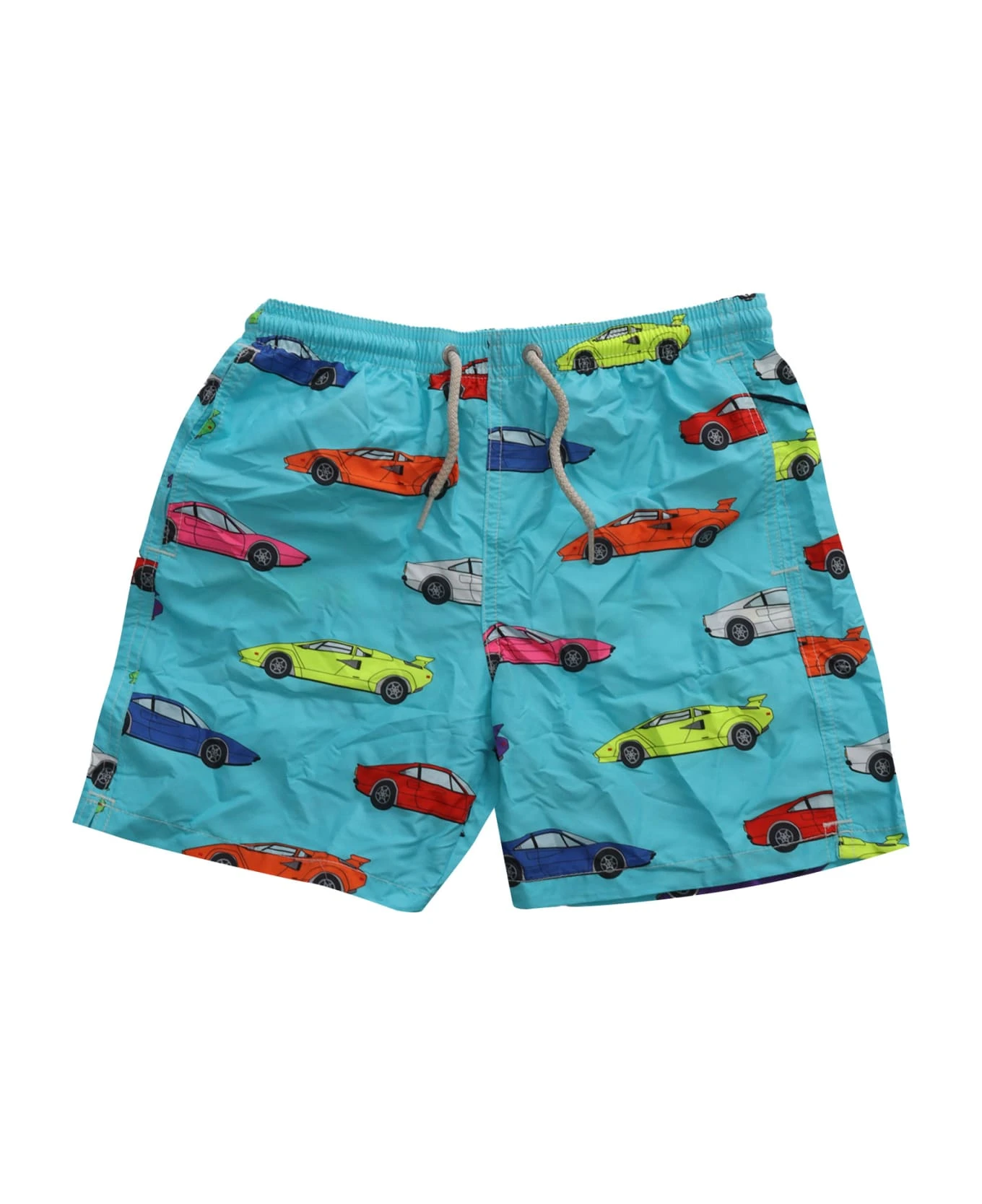 Technical fabric trunks, all-over print, contrasting drawstring, side pockets, back pocket, logo