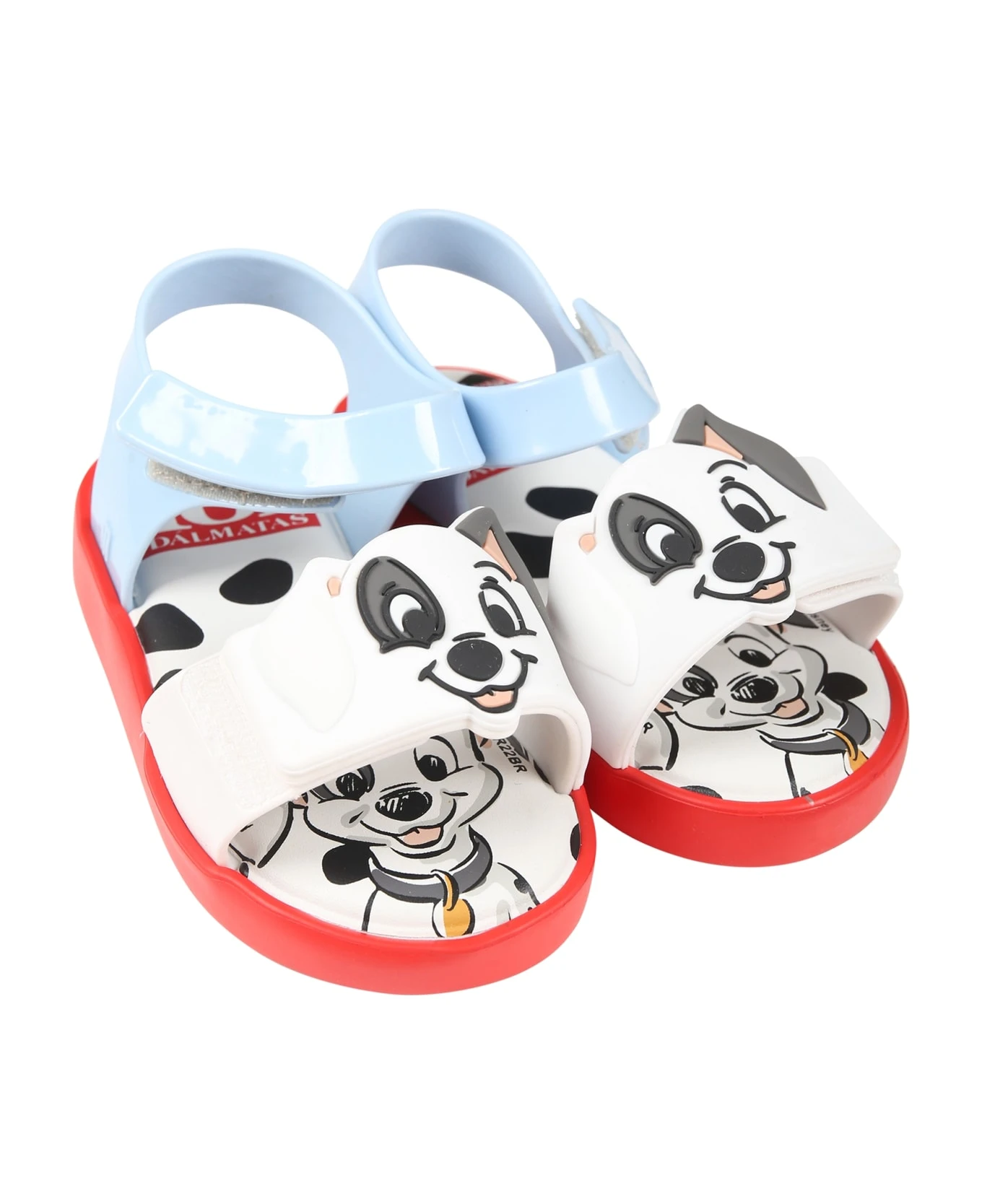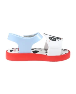 Red vegan sandals, scented, with rubber sole, Velcro closure on the side and front, comfortable fit thanks to the soft footbed. Upper, insole lining, insole and outsole in other materials. They are embellished with 101 Dalmatians on the front and insole.
