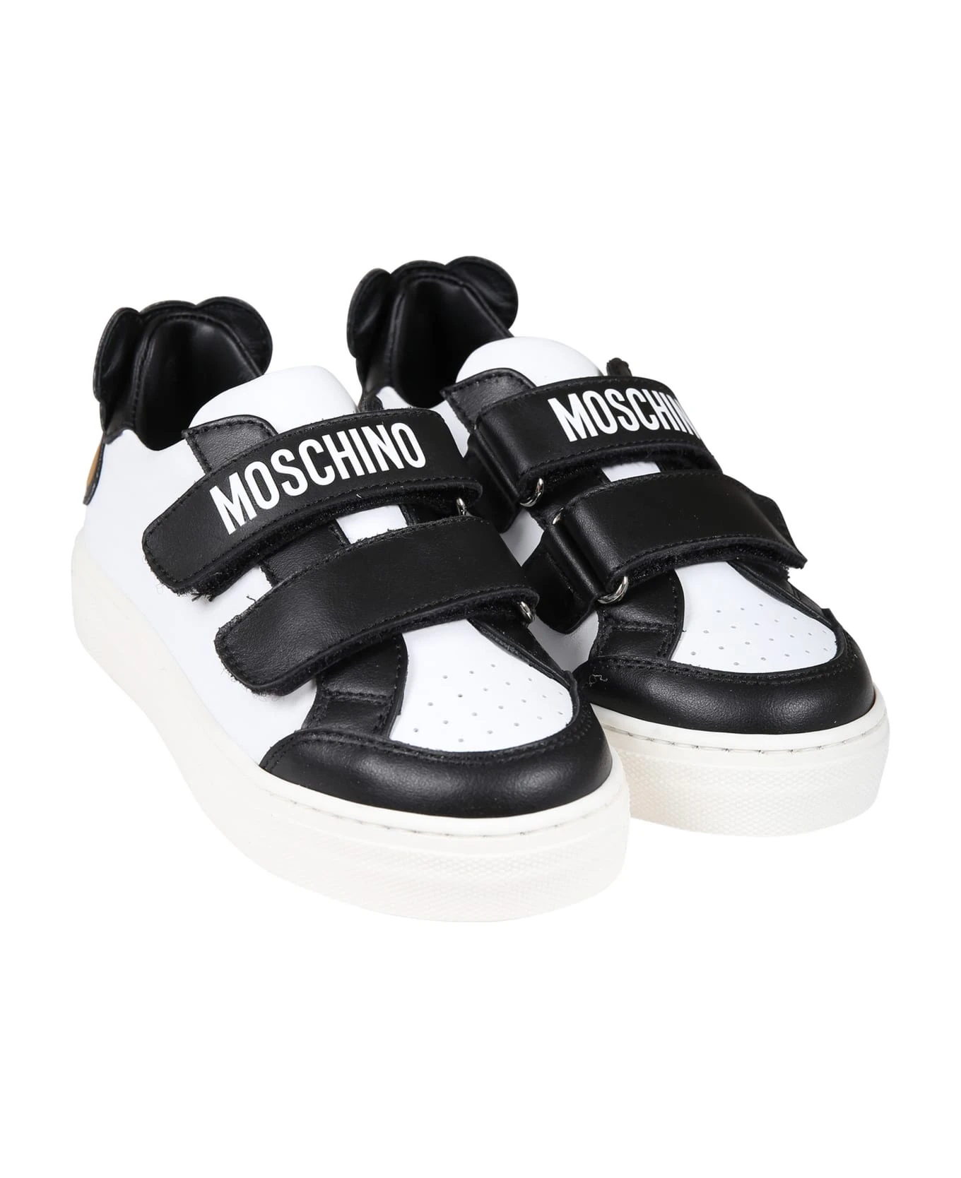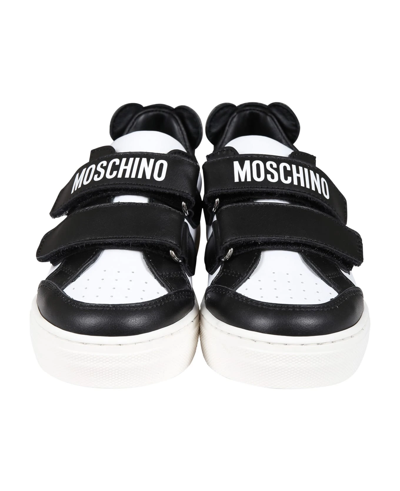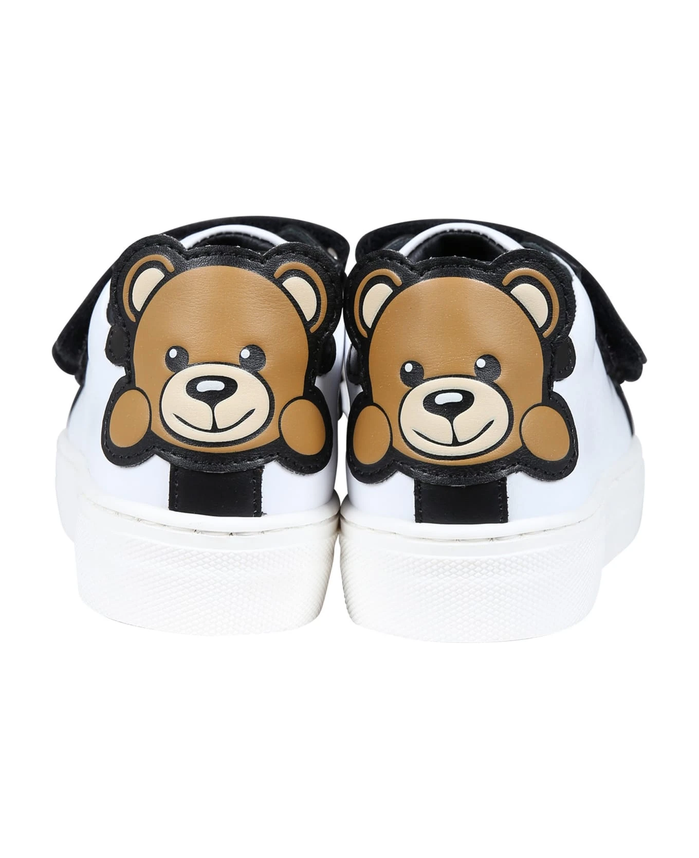 Black leather sneakers, with rubber sole, double velcro strap closure and round toe. They are embellished with logo on the top and Teddy Bear patch on the back.