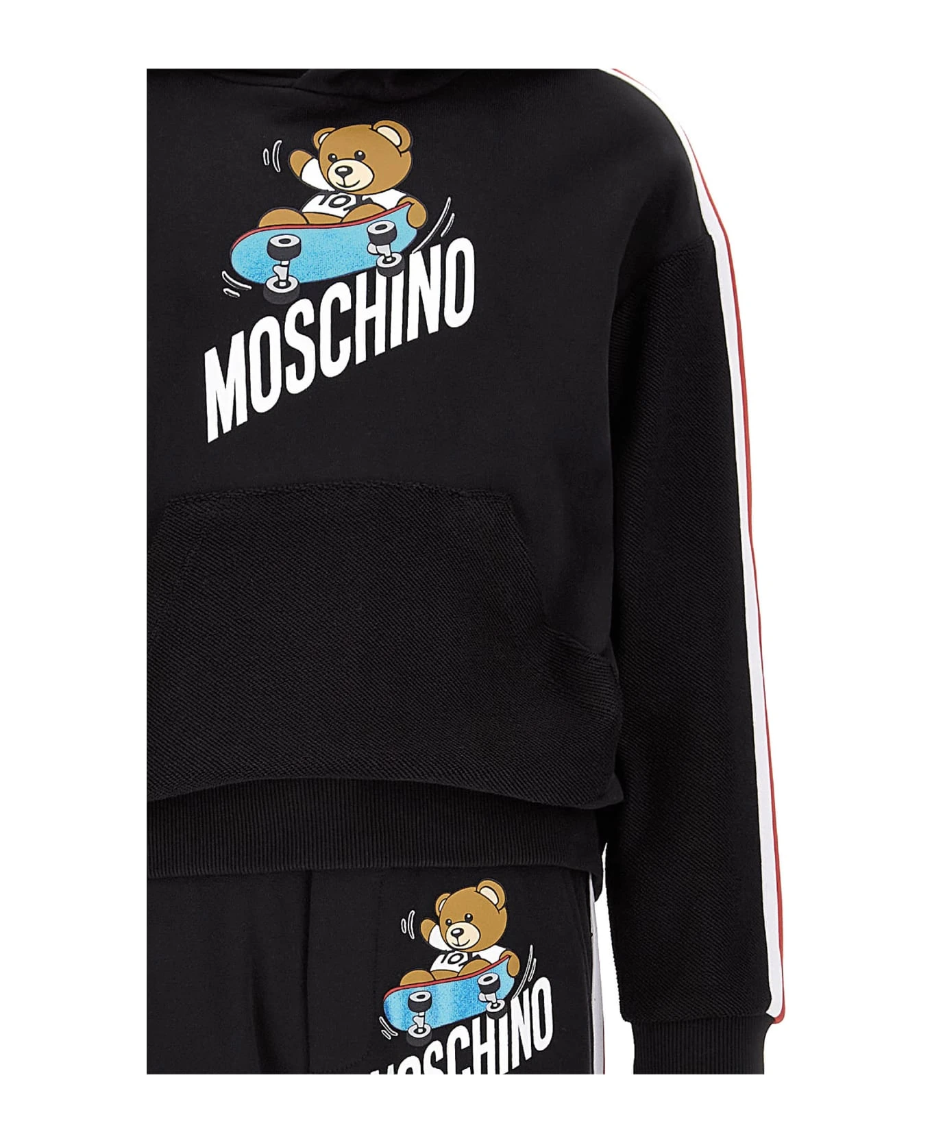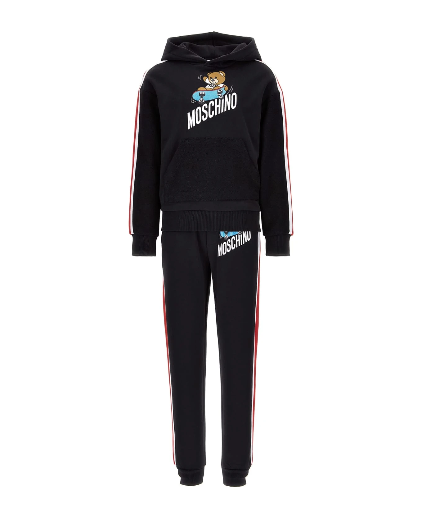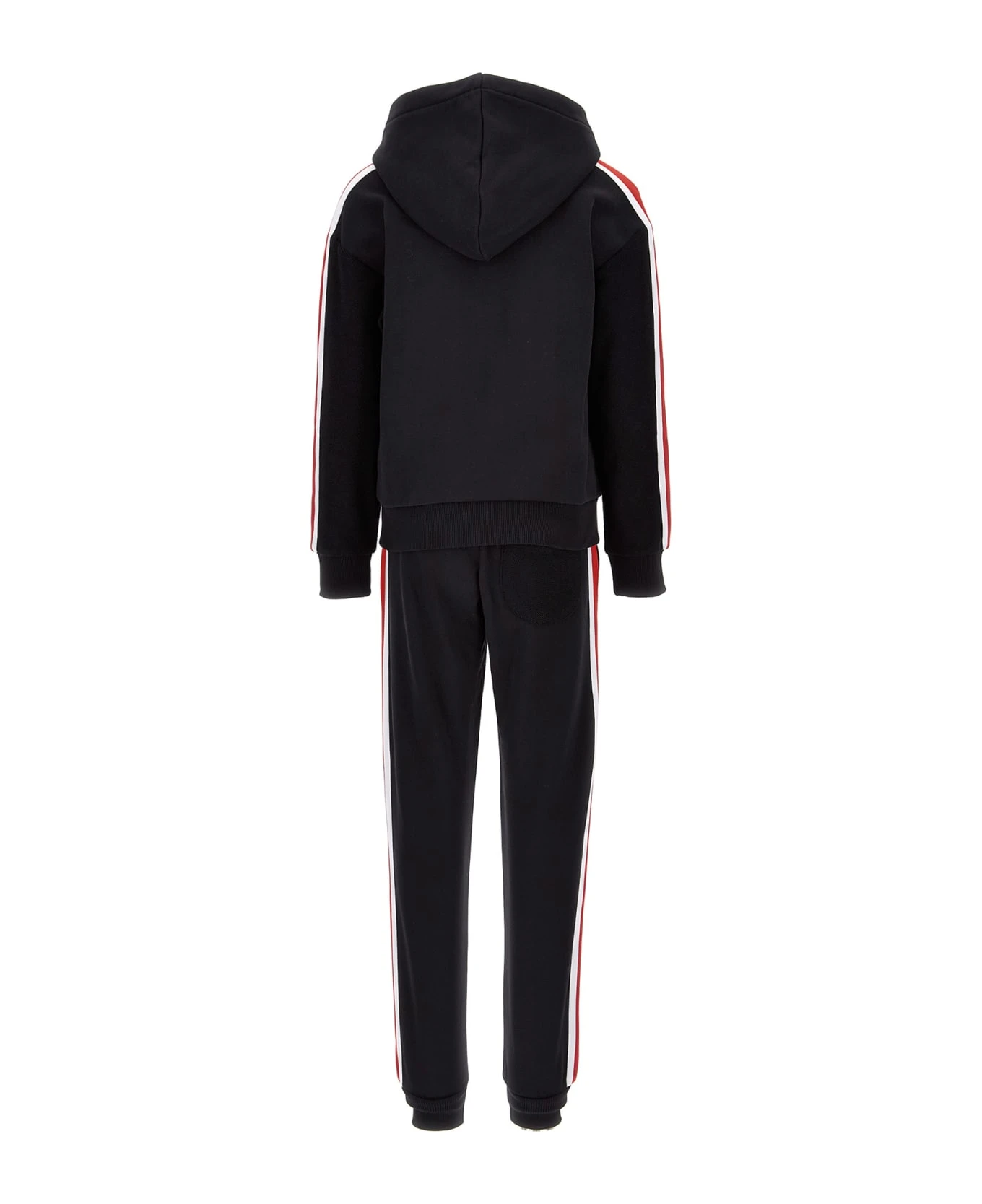 Cotton tracksuit, hoodie, front logo print, bands on sleeves, kangaroo pocket, ribbed edges, side bands, logo print