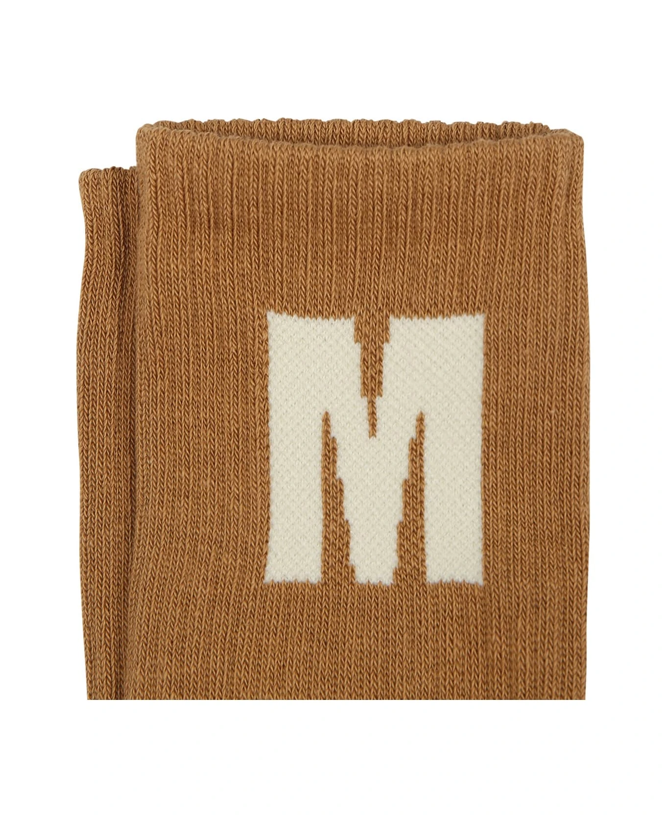 Brown terrycloth socks with ribbed leg. They are embellished with ivory logo on the side and on the bottom.