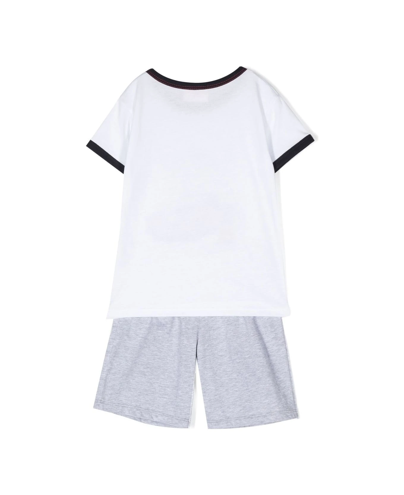 White, ash grey, cotton, contrast trim, round neckline, short sleeves, straight hem, mélange effect and elasticated waist.