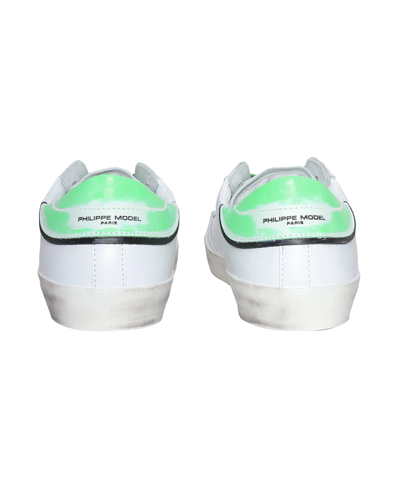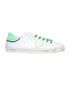 Leather sneakers, green laces, contrasting gradient effect heel tab, side logo detail, rubber sole, used effect